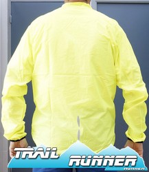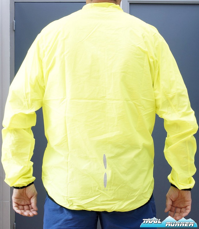 Comme sur un fameux coupe vent, il y a une poche pour rouler la veste la veste windpack. A l’intérieur de la veste, une pochette intégrée permet de ranger la veste, elle ne prendra pas beaucoup de place dans un sac, lors d’un raid ou d’un ultra. Pour finir sur la description de la veste, elle dispose d’impressions réfléchissante sur l’avant bras droit (coté extérieur quand vous courez du coté gauche de la route) et dans le dos. Un élastique vient finir le col pour une bonne « étanchéité » aux courants d’air ! J’ai pris une taille XL pour mes 183cm, elle me va très bien.